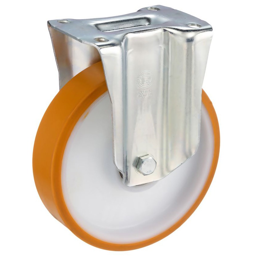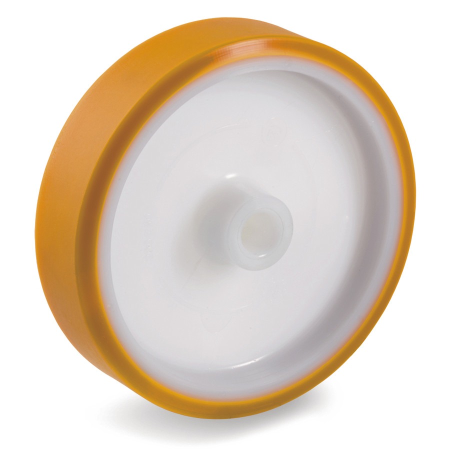 •  Цельнолитое колесо изготовлено из полиамида 6 с показателем твердости 70 единиц по шкале Шора D. В оси расположен подшипник скольжения, обеспецивающий комфортное передвижение.