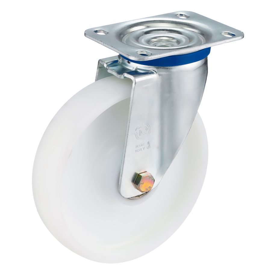 Полиамидные колеса оптимизированы для перемещения в условиях, требующих сочетания прочности, устойчивости к агрессивной химической среде и гигиеничности.