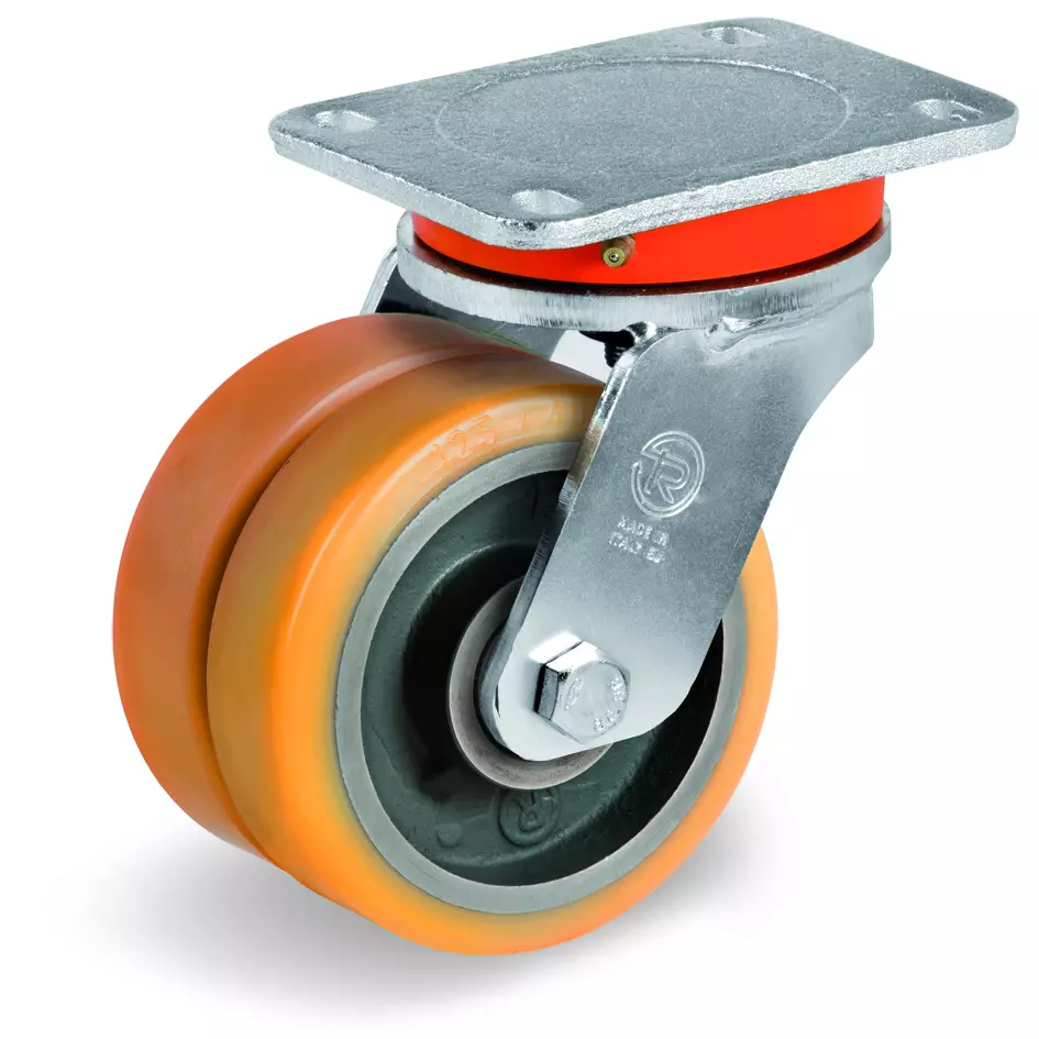 Колесо большегрузное полиуретановое без кронштейна спаренное Tellure Rota 648063 диаметр 125 мм, нагрузка 900 кг, чугунное