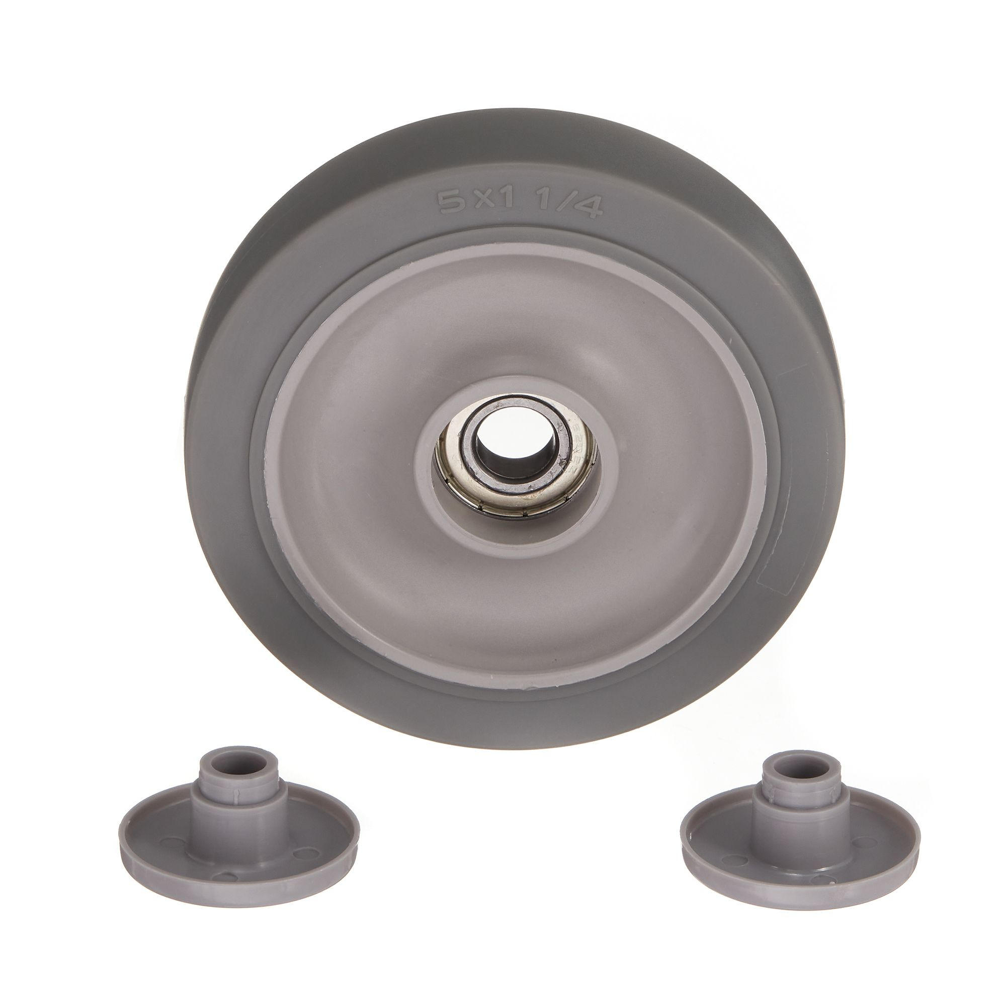 Колесо из термопластичной серой резины твердостью 85 Шор А. Основание: полипропилен.